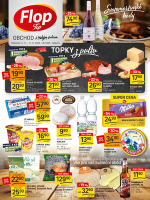 Na 1. stránce letáku FLOP TOP od 5.11. do 11.11.2025 platného od 5.11.2025 do 11.11.2025 najdeme následující zboží v akci.