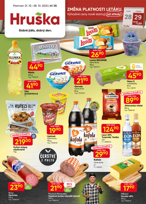 Na 1. stránce letáku Hruška od 21.10. do 28.10.2025 platného od 21.10.2025 do 28.10.2025 najdeme následující zboží v akci.