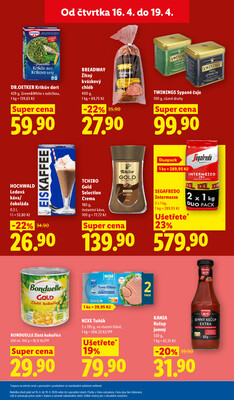 Na 21. stránce letáku Lidl Čtvrtek od 16.4. do 19.4.2026 platného od 16.4.2026 do 19.4.2026 najdeme následující zboží v akci.