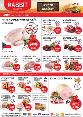 Na 1. stránce letáku RABBIT řeznictví od 3.11. do 9.11.2025 platného od 3.11.2025 do 9.11.2025 najdeme následující zboží v akci.