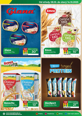 Na 13. stránce letáku Tamda Foods od 8.10. do 14.10.2025 platného od 8.10.2025 do 14.10.2025 najdeme následující zboží v akci.