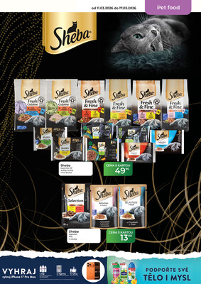 - Sheba krmivo pro dospělé kočky, vybrané druhy v akci, za 13,90 Kč .