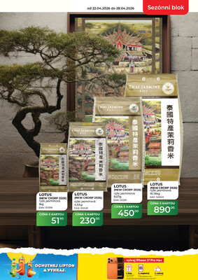 - LOTUS (NEW CRORP 2026) rýže jasmínová 18,18kg v akci, za 890 Kč .