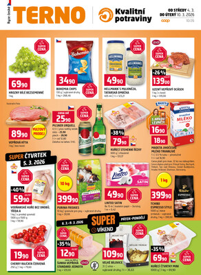Na 1. stránce letáku Terno České Budějovice, Třeboň, Trhové sviny, Bechyně, Týn nad Vltavou od 4.3. do 10.3.2026 platného od 4.3.2026 do 10.3.2026 najdeme následující zboží v akci.