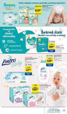 - Linteo Baby Vlhčené dětské ubrousky pro podrážděnou pokožku 80 ks v akci, s fantastickou slevou 54%, za 22,90 Kč ( Tesco Clubcard cena), akce platí od 7.4.2026.