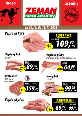 ZEMAN maso-uzeniny akční leták pro vybrané prodejny první skupiny od 10.11. do 15.11.2025