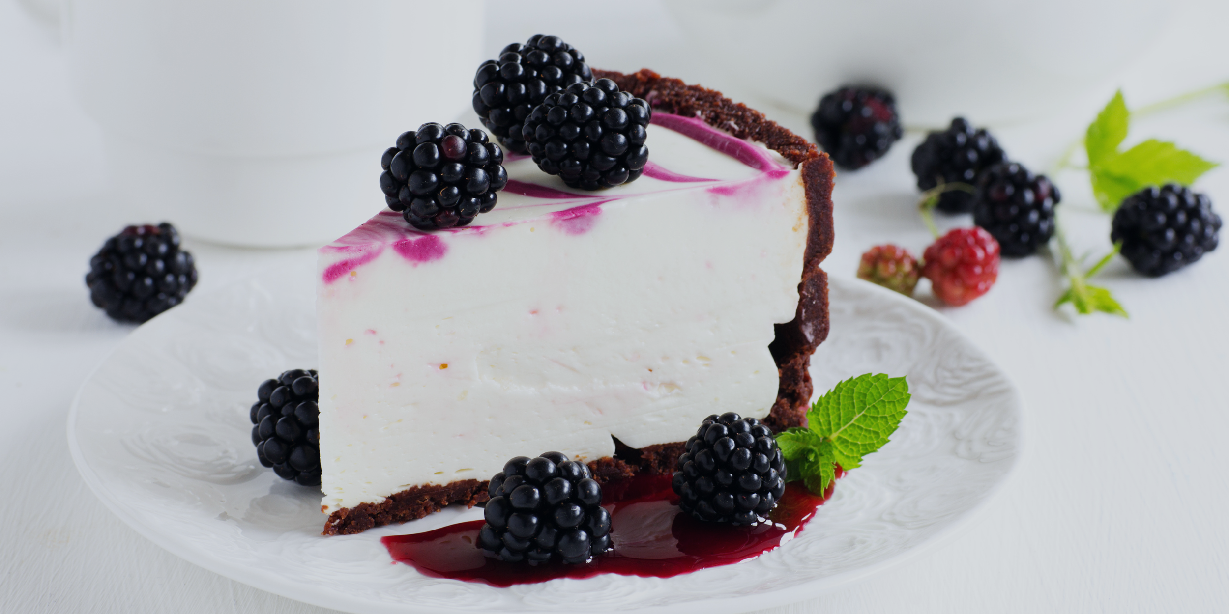 - Dekorace – Na zchladlý cheesecake rozložte ostružiny, dozdobte mátou či jedlými květy.