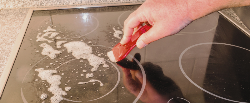 Pokud se na desce objeví zaschlé nečistoty, zkuste použít speciální škrabku určenou pro sklokeramické nebo indukční desky. Tato pomůcka je efektivní při odstraňování i těch nejtvrdohlavějších skvrn. Pamatujte však na to, aby byla škrabka dostatečně ostrá a nedrhněte s ní příliš silně, abyste nezpůsobili poškrábání desky.