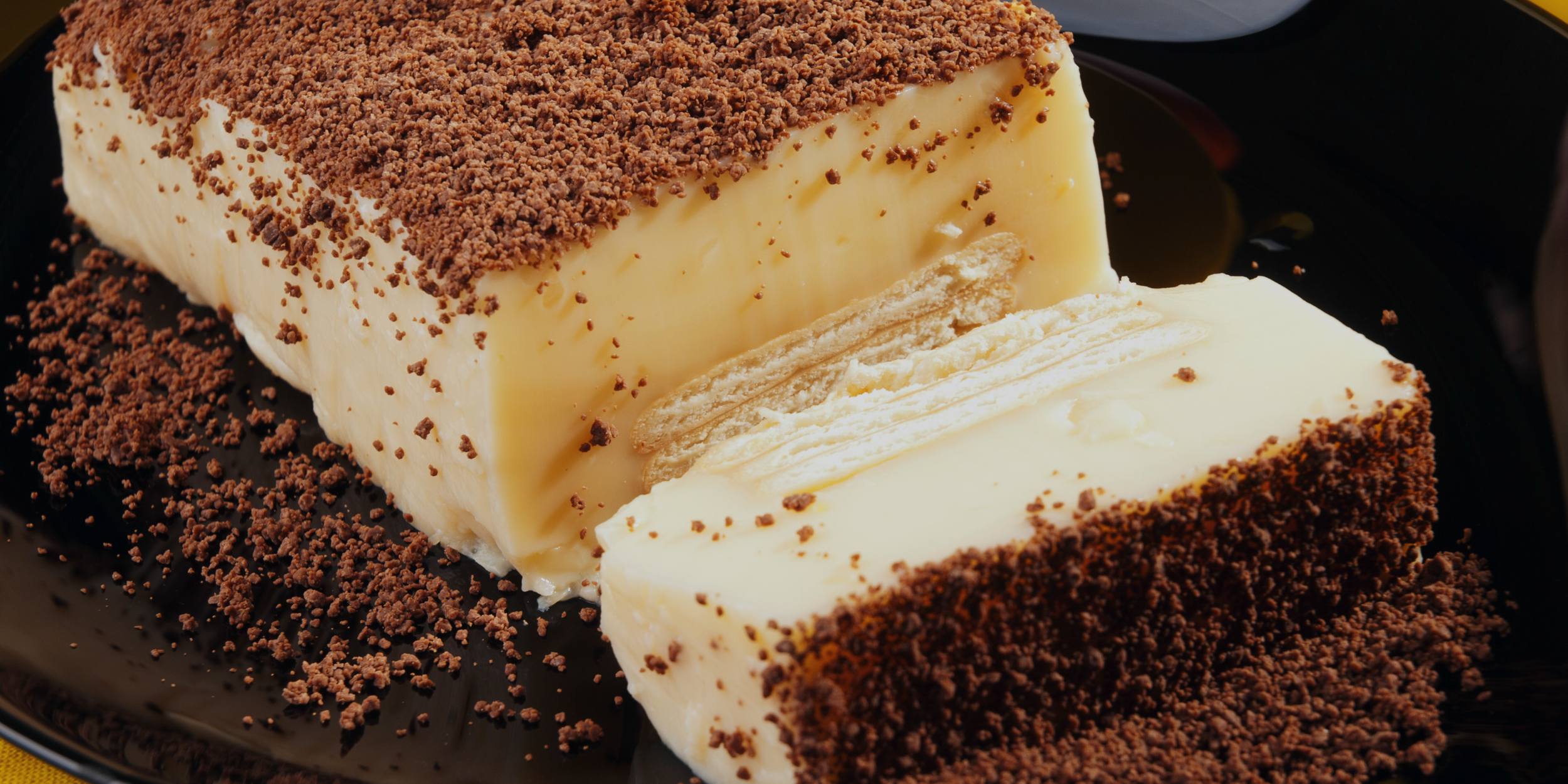 - Na sušenky rozetřete část pudinkového krému a pokračujte střídáním vrstev, dokud nespotřebujete všechny suroviny. Poslední vrstvu tvoří krém.