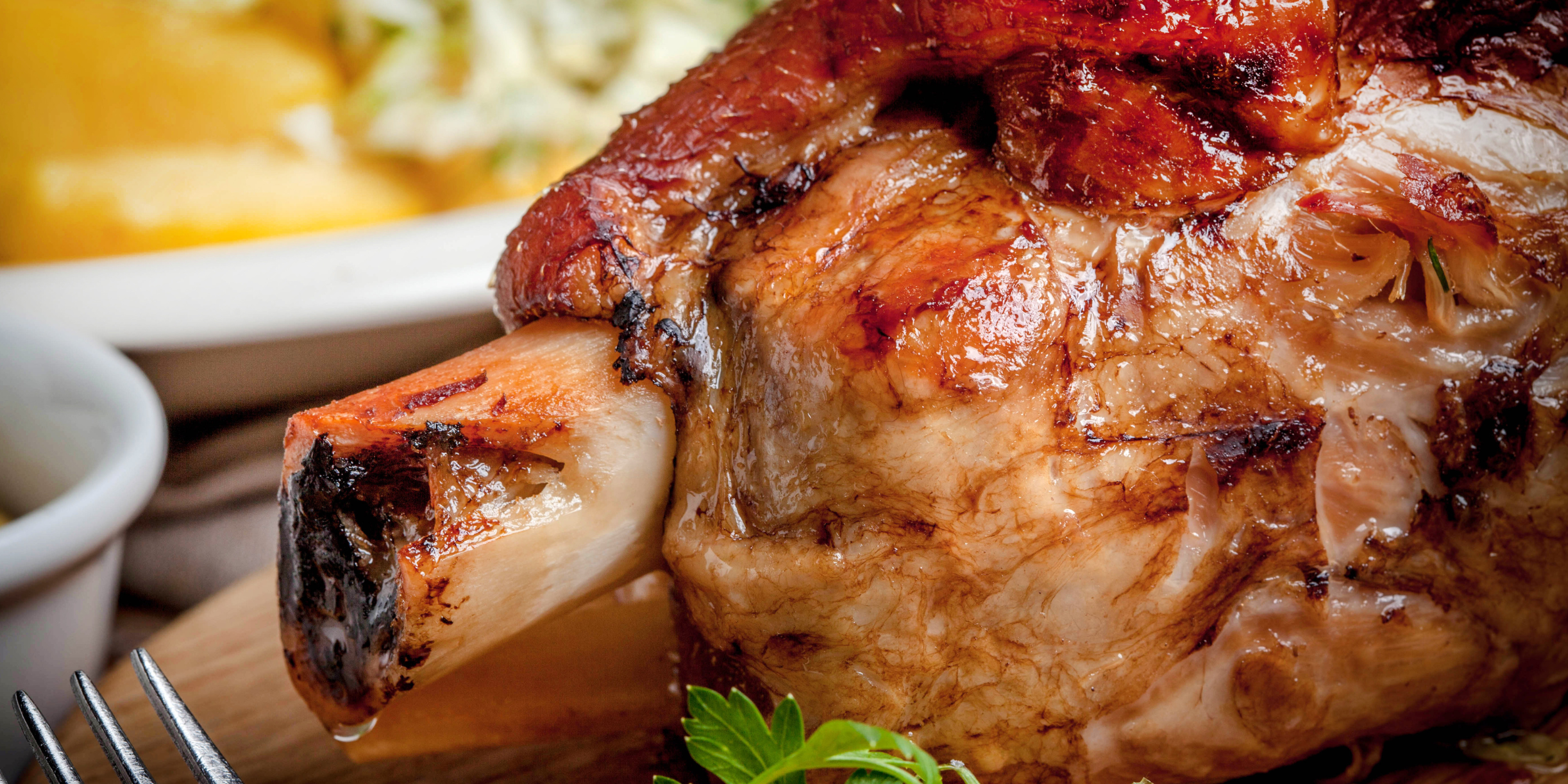 Recept na křupavé pečené koleno v medovo-hořčičné marinádě