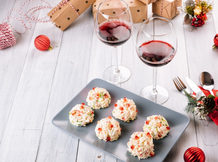 4. Z vychladlé sýrové směsi tvoříme lžící kuličky a obalujeme je ve směsi se slaninou. Bezprostředně před podáváním zapíchněte do kuliček.