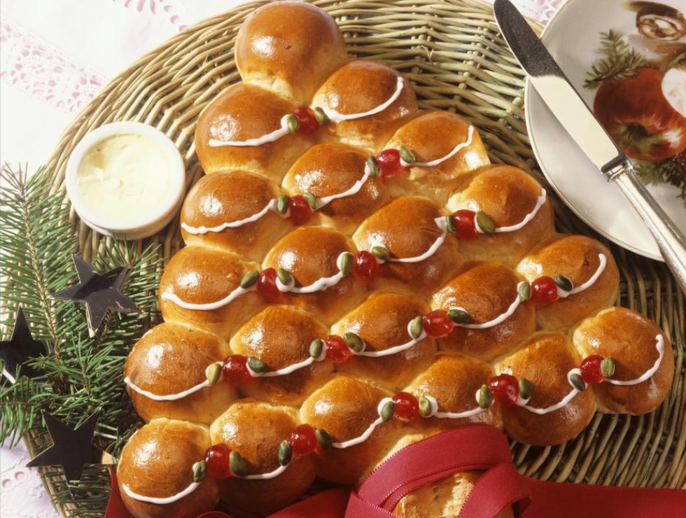 2. Každou kuličku naplňte sýrem a jemně ji vytvarujte dlaněmi. Uspořádejte kuličky do tvaru vánočního stromečku. Přikryjeme utěrkou a necháme ještě 20 minut kynout. Před pečením potřeme žloutkem a osolíme.