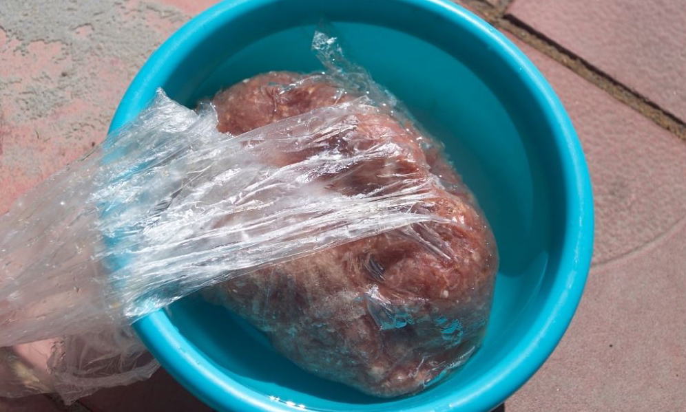 - ve studené vodě - i tato metoda patří k nejšetrnějším a nejbezpečnějším, ale je o poznání efektivnější než rozmrazování v lednici. Maso ve vhodném (nepropustném) sáčku vložte do mísy a celý balíček zalijte studenou vodou. Voda vede teplo, proto bude maso k dispozici poměrně rychle. Navíc, sáček a voda omezí vznik bakterií. Vodu je nutné měnit cca každých 30 minut