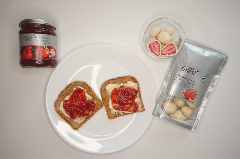 Na domácí jahody sice ještě není sezóna, to ale neznamená, že byste si jejich chuť nemohli dopřát již nyní. Prvními dvěma výrobky v dnešním testu jsou Tesco Finest výběrový extra džem z jahod a Tesco Finest lyofilizované jahody v bílé čokoládě.