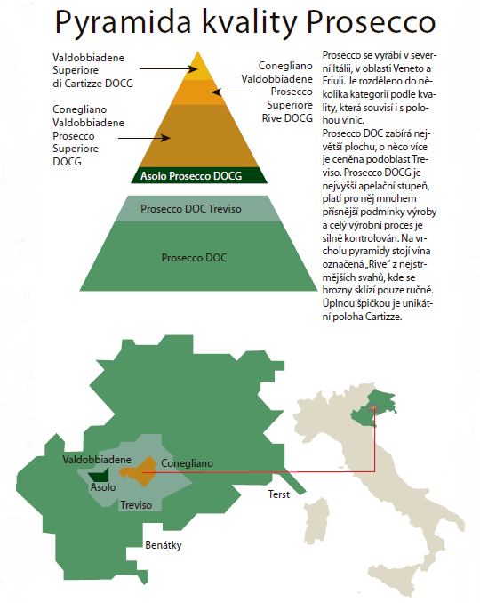 Prosecco je nejpopulárnější šumivé víno na světě. Cenově je dostupnější než šampaňské, všichni ho znají, všichni ho chtějí. Málokdo však ví, že není jedno prosecco, ale že má více podob a několik kvalitativních stupňů (viz pyramida…), které se mezi sebou výrazně liší.